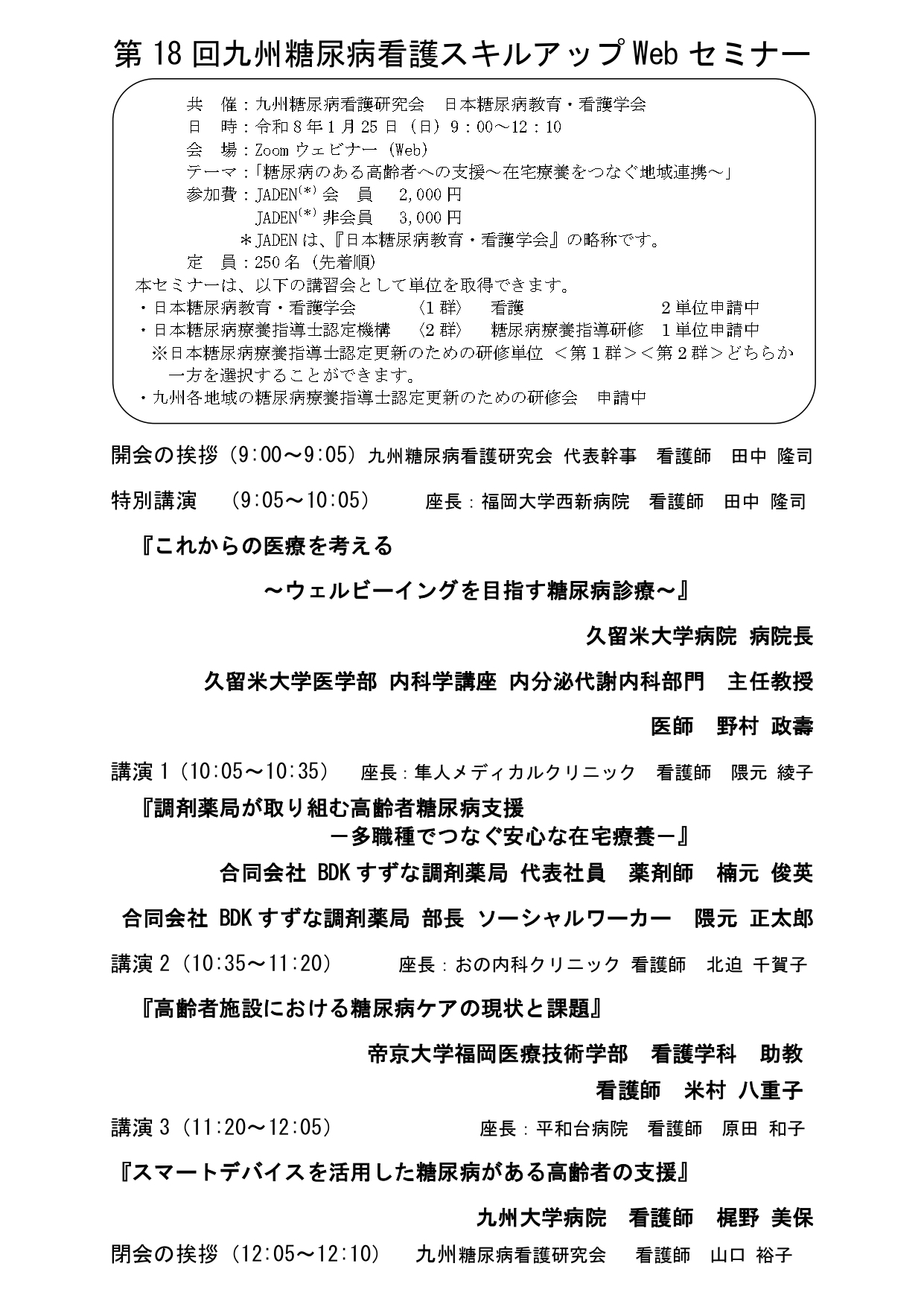 2026年1月25日 第18回九州糖尿病看護スキルアップWebセミナー 事前申し込み