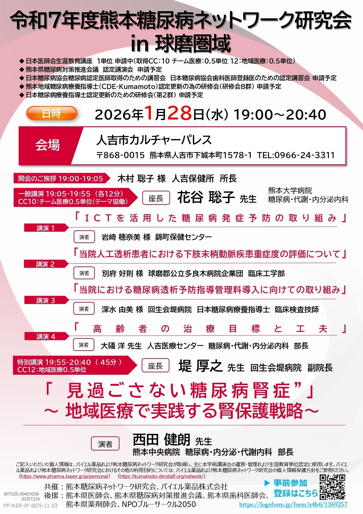 2026年1月28日 令和7年度熊本糖尿病ネットワーク研究会 in 球磨圏域 事前申し込み
