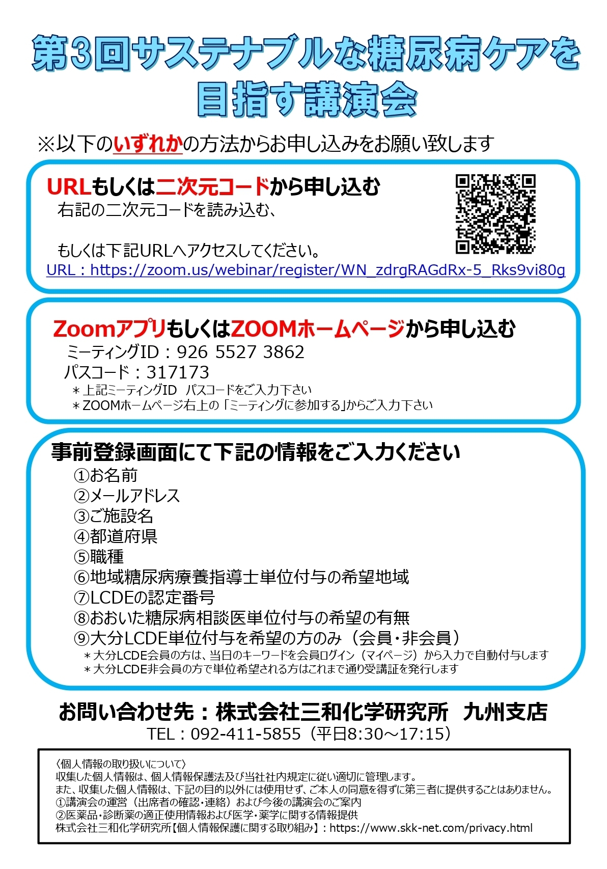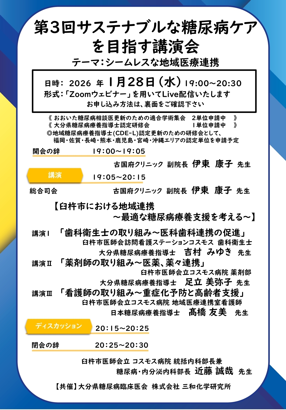 2026年1月28日 第3回サステナブルな糖尿病ケアを目指す講演会 事前申し込み