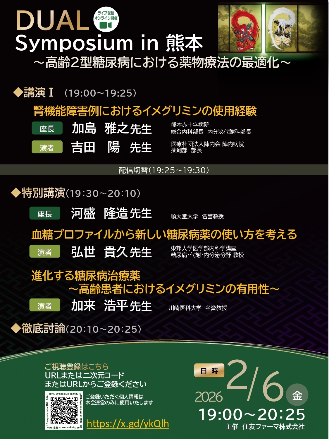 2026年2月6日 DUAL Symposium in熊本~高齢2型糖尿病における薬物療法の最適化~ 事前申し込み