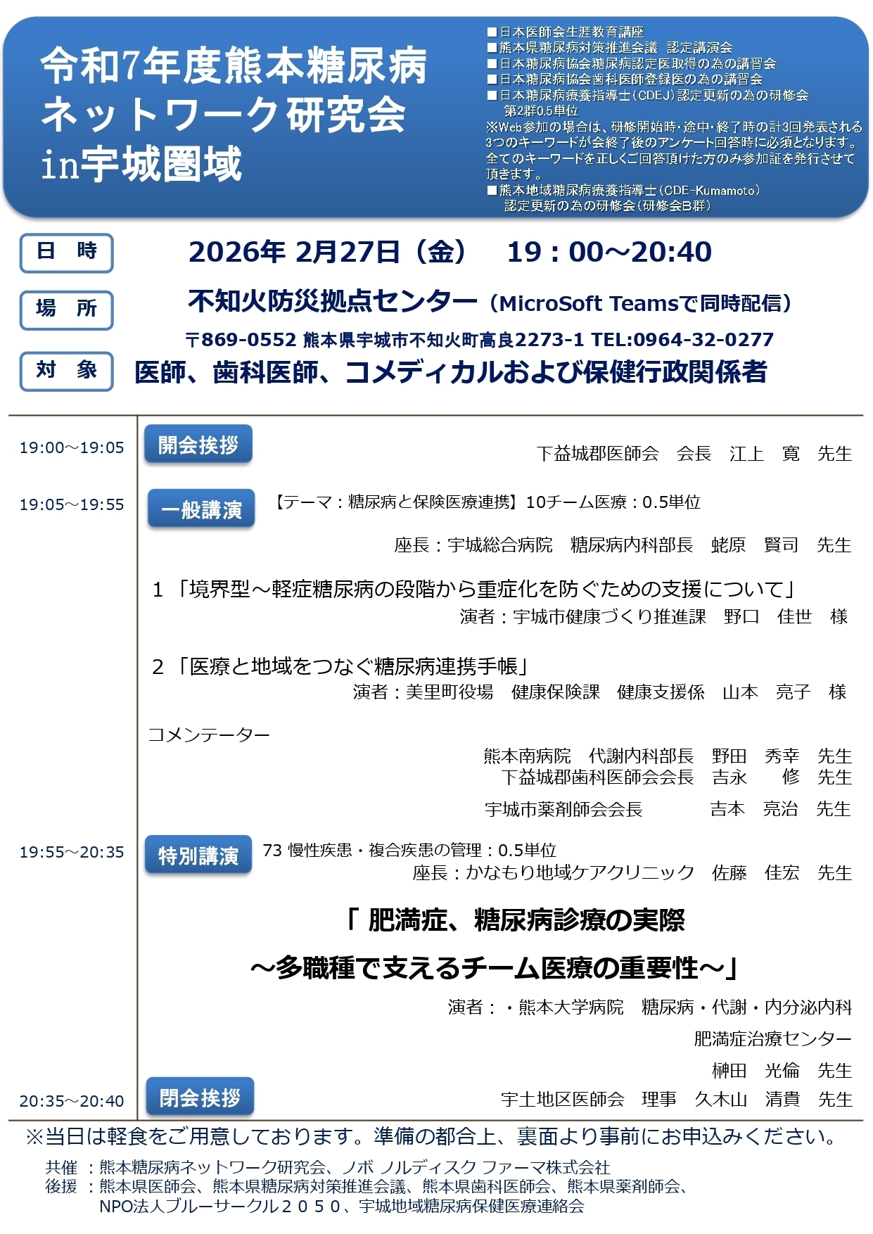 2026年2月27日 令和7年度熊本糖尿病ネットワーク研究会in宇城圏域 事前申し込み