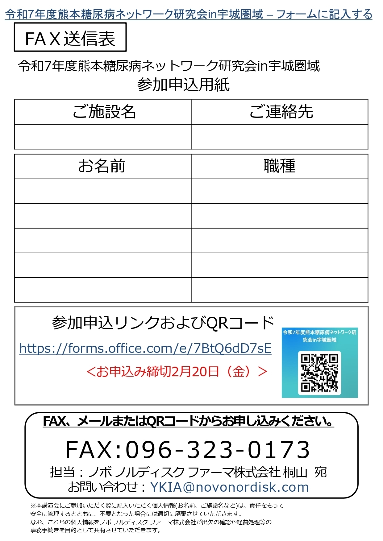 2026年2月12日 令和7年度熊本糖尿病ネットワーク研究会in鹿本圏域 事前申し込み