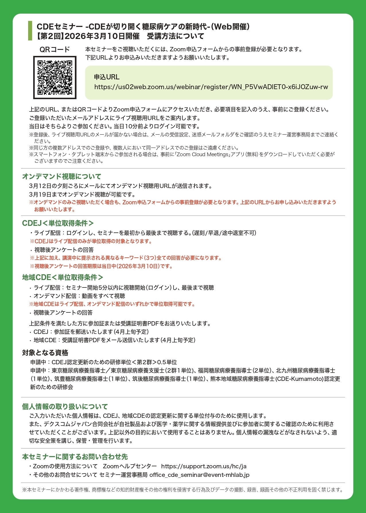 2026年3月10日 CDEセミナー ーCDEが切り開く糖尿病ケアの新時代ー 事前申し込み