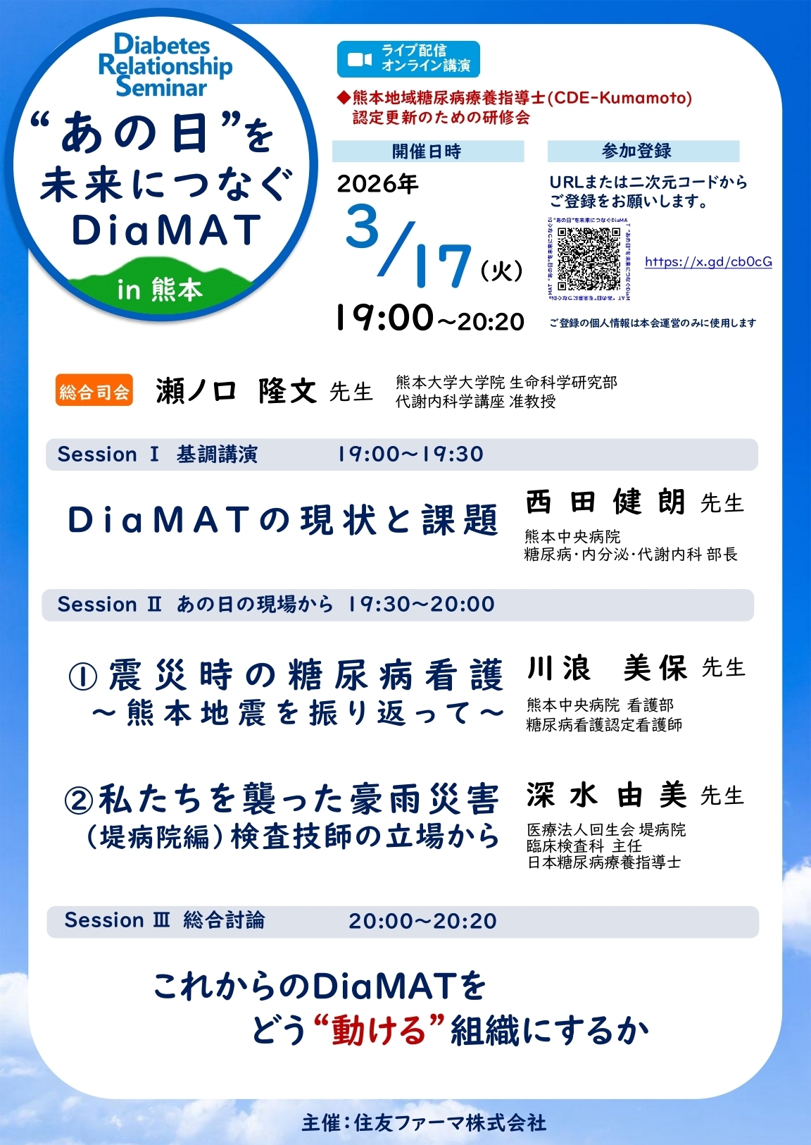 2026年3月17日 Diabetes Relationship Seminar in 熊本 ”あの日”を未来につなぐ Dia MAT in 熊本 事前申し込み